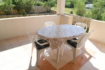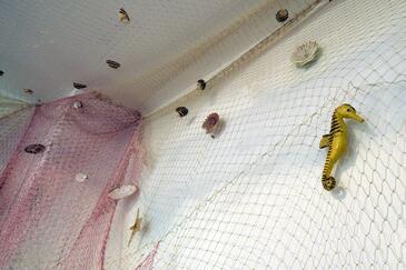 Ferienwohnung bietet Platz für 5 Gäste. Die Betten sind in Schlafzimmern, die es 2 gibt, innerhalb einer Gesamtfläche von 53m2, angeordnet. Die Gäste haben eine eigene Terrasse zur Verfügung, auf der sie in warmen Sommernächten genießen können. Das Apartment bietet Meerblick. Es ist erlaubt, Speisen auf dem Gemeinschafts-Grill vorzubereiten.