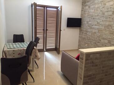 Ferienwohnung bietet Platz für 5 Gäste. Die Betten sind in Schlafzimmern, die es 1 gibt, und in Wohnzimmer, innerhalb einer Gesamtfläche von 34m2, angeordnet. Die Gäste haben eine eigene Terrasse zur Verfügung, auf der sie in warmen Sommernächten genießen können. Das Apartment bietet Meerblick. Es ist erlaubt, Speisen auf dem Gemeinschafts-Grill vorzubereiten. In der Unterkunftseinheit besteht die Möglichkeit des Mitbringens von Haustieren, und die Dienstleistung ist im Preis der Unterkunft enthalten. Durch die Terrasse der gebuchten Unterkunftseinheit gehen auch andere Gäste oder Vermieter.