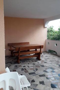 Ferienwohnung bietet Platz für 5 Gäste. Die Betten sind in Schlafzimmern, die es 1 gibt, und in Esszimmer, innerhalb einer Gesamtfläche von 30m2, angeordnet. Die Gäste haben eine eigene Terrasse zur Verfügung, auf der sie in warmen Sommernächten genießen können. Das Apartment bietet Meerblick. Es ist erlaubt, Speisen auf dem Gemeinschafts-Grill vorzubereiten. In der gebuchten Unterkunftseinheit zahlt man am Ort ein Depositum ( der Preis ist an der Internetseite angeführt ).