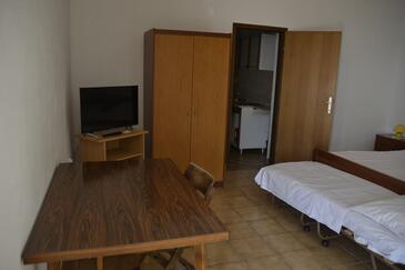 Ferienwohnung bietet Platz für 5 Gäste. Die Betten sind in Schlafzimmern, die es 2 gibt, innerhalb einer Gesamtfläche von 44m2, angeordnet. Die Gäste haben eine eigene Terrasse zur Verfügung, auf der sie in warmen Sommernächten genießen können. Das Apartment bietet Meerblick. Es ist erlaubt, Speisen auf dem Gemeinschafts-Grill vorzubereiten. In der Unterkunftseinheit besteht die Möglichkeit des Mitbringens von Haustieren gegen Aufpreis.