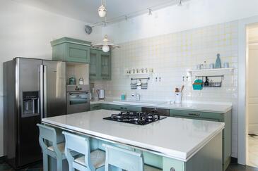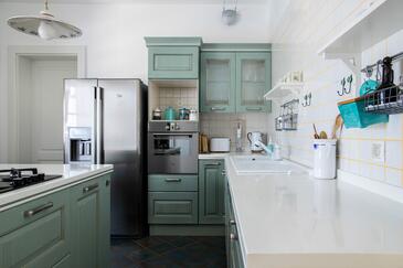 Haus bietet Platz für 8 Gäste. Die Betten sind in Schlafzimmern, die es 4 gibt, innerhalb einer Gesamtfläche von 149m2, angeordnet. Die Gäste haben eine eigene Terrasse zur Verfügung, auf der sie in warmen Sommernächten genießen können. Das Haus bietet Meerblick. Es ist erlaubt, Speisen auf dem Gemeinschafts-Grill vorzubereiten. Während ihres Aufenthalts können sich Gäste im privaten Schwimmbad entspannen.