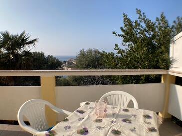 Ferienwohnung bietet Platz für 8 Gäste. Die Betten sind in Schlafzimmern, die es 3 gibt, innerhalb einer Gesamtfläche von 67m2, angeordnet. Die Gäste haben eine eigene Terrasse zur Verfügung, auf der sie in warmen Sommernächten genießen können. Das Apartment bietet Meerblick. Es ist erlaubt, Speisen auf dem Gemeinschafts-Grill vorzubereiten. In der Unterkunftseinheit besteht die Möglichkeit des Mitbringens von Haustieren gegen Aufpreis.