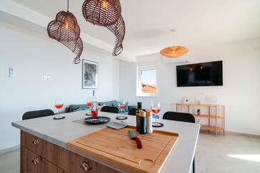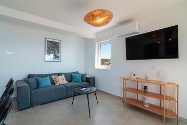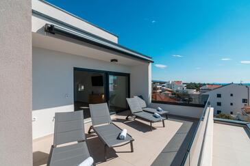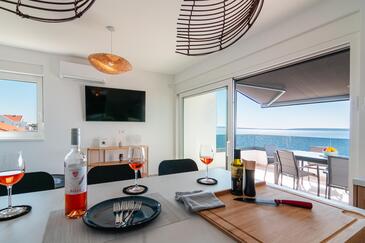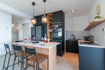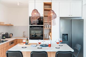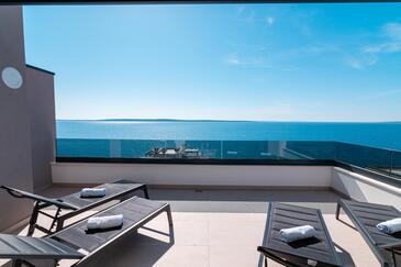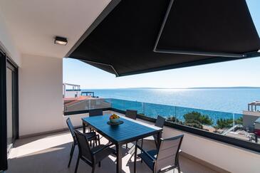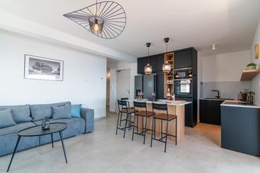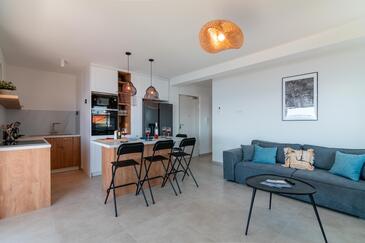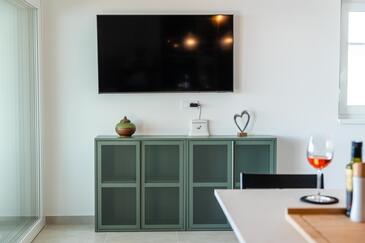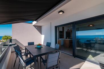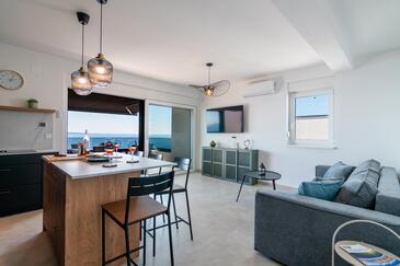 Ferienwohnung bietet Platz für 6 Gäste. Die Betten sind in Schlafzimmern, die es 2 gibt, und in Wohnzimmer, innerhalb einer Gesamtfläche von 129m2, angeordnet. Die Gäste haben eine eigene Terrasse zur Verfügung, auf der sie in warmen Sommernächten genießen können. Das Apartment bietet Meerblick.