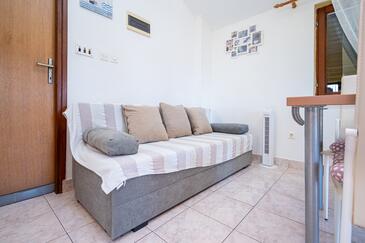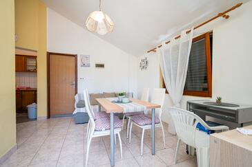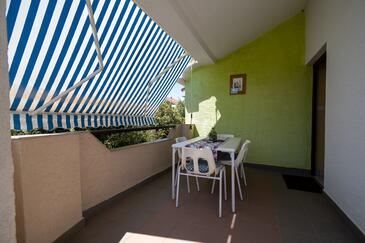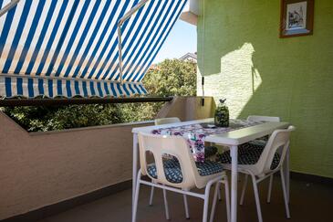Ferienwohnung bietet Platz für 4 Gäste. Die Betten sind in Schlafzimmern, die es 2 gibt, innerhalb einer Gesamtfläche von 48m2, angeordnet. Die Gäste haben eine eigene Terrasse zur Verfügung, auf der sie in warmen Sommernächten genießen können. Es ist erlaubt, Speisen auf dem Gemeinschafts-Grill vorzubereiten.
