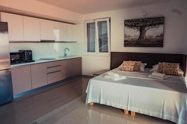 Ferienwohnung bietet Platz für 4 Gäste. Die Betten sind in Schlafzimmern, die es 1 gibt, und in Wohnzimmer, innerhalb einer Gesamtfläche von 38m2, angeordnet. Die Gäste haben einen eigenen Balkon zur Verfügung, auf der sie in warmen Sommernächten genießen können. Das Apartment bietet Meerblick. Es ist erlaubt, Speisen auf dem Gemeinschafts-Grill vorzubereiten. Während ihres Aufenthalts können Gäste das gemeinsam zur Nutzung stehende Schwimmbad benutzen. In der Unterkunftseinheit besteht die Möglichkeit des Mitbringens von Haustieren gegen Aufpreis.