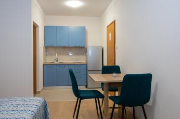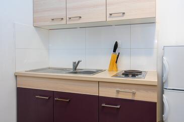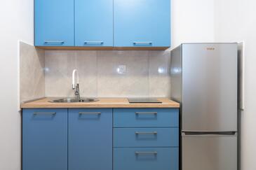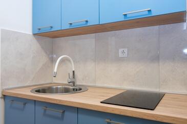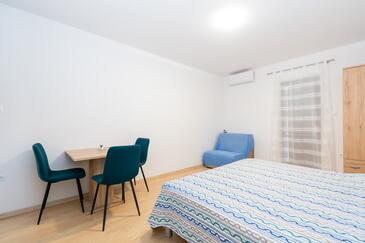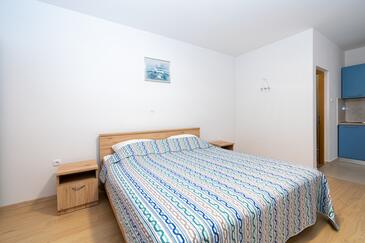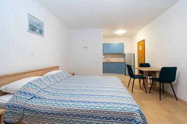 Ferienwohnung bietet Platz für 4 Gäste. Die Betten sind in Schlafzimmern, die es 2 gibt, innerhalb einer Gesamtfläche von 35m2, angeordnet. Die Gäste haben eine eigene Terrasse zur Verfügung, auf der sie in warmen Sommernächten genießen können. Das Apartment bietet Meerblick. Es ist erlaubt, Speisen auf dem Gemeinschafts-Grill vorzubereiten.
