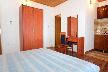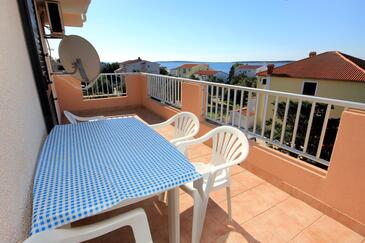 Ferienwohnung bietet Platz für 4 Gäste. Die Betten sind in Schlafzimmern, die es 1 gibt, und in Wohnzimmer, innerhalb einer Gesamtfläche von 40m2, angeordnet. Die Gäste haben eine eigene Terrasse zur Verfügung, auf der sie in warmen Sommernächten genießen können. Das Apartment bietet Meerblick. Es ist erlaubt, Speisen auf dem Gemeinschafts-Grill vorzubereiten. In der Unterkunftseinheit besteht die Möglichkeit des Mitbringens von Haustieren, und die Dienstleistung ist im Preis der Unterkunft enthalten.