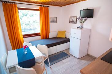 Ferienwohnung bietet Platz für 4 Gäste. Die Betten sind in Schlafzimmern, die es 1 gibt, und in Esszimmer, innerhalb einer Gesamtfläche von 30m2, angeordnet. Die Gäste haben eine eigene Terrasse zur Verfügung, auf der sie in warmen Sommernächten genießen können. Es ist erlaubt, Speisen auf dem Gemeinschafts-Grill vorzubereiten. In der Unterkunftseinheit besteht die Möglichkeit des Mitbringens von Haustieren gegen Aufpreis.