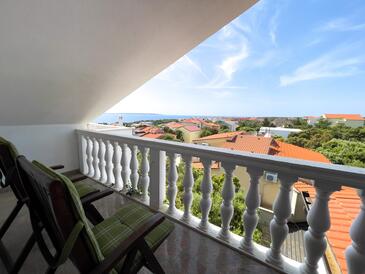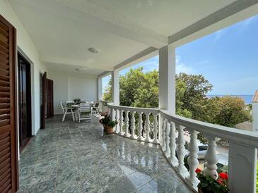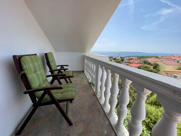 Ferienwohnung bietet Platz für 6 Gäste. Die Betten sind in Schlafzimmern, die es 3 gibt, und in Wohnzimmer, innerhalb einer Gesamtfläche von 76m2, angeordnet. Die Gäste haben eine eigene Terrasse zur Verfügung, auf der sie in warmen Sommernächten genießen können. Das Apartment bietet Meerblick. Es ist erlaubt, Speisen auf dem Gemeinschafts-Grill vorzubereiten. In der Unterkunftseinheit besteht die Möglichkeit des Mitbringens von Haustieren gegen Aufpreis. In der gebuchten Unterkunftseinheit zahlt man am Ort ein Depositum ( der Preis ist an der Internetseite angeführt ).