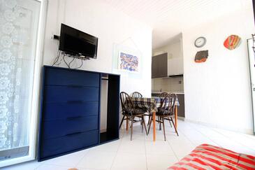Ferienwohnung bietet Platz für 4 Gäste. Die Betten sind in Schlafzimmern, die es 1 gibt, und in Wohnzimmer, innerhalb einer Gesamtfläche von 26m2, angeordnet. Die Gäste haben eine eigene Terrasse zur Verfügung, auf der sie in warmen Sommernächten genießen können. Das Apartment bietet Meerblick. Es ist erlaubt, Speisen auf dem Gemeinschafts-Grill vorzubereiten. In der Unterkunftseinheit besteht die Möglichkeit des Mitbringens von Haustieren gegen Aufpreis.