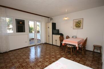 Ferienwohnung bietet Platz für 4 Gäste. Die Betten sind in Schlafzimmern, die es 1 gibt, und in Wohnzimmer, innerhalb einer Gesamtfläche von 49m2, angeordnet. Die Gäste haben eine eigene Terrasse zur Verfügung, auf der sie in warmen Sommernächten genießen können. Es ist erlaubt, Speisen auf dem Gemeinschafts-Grill vorzubereiten.