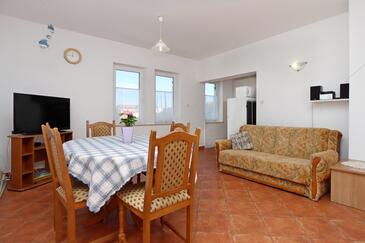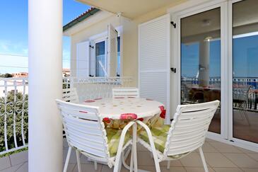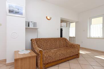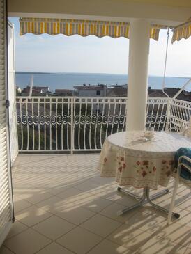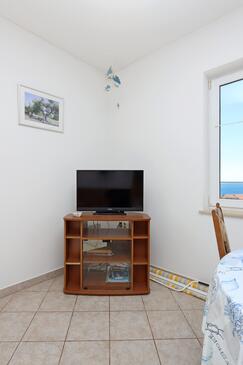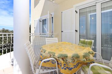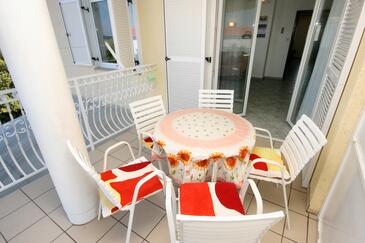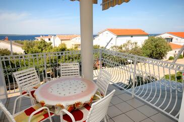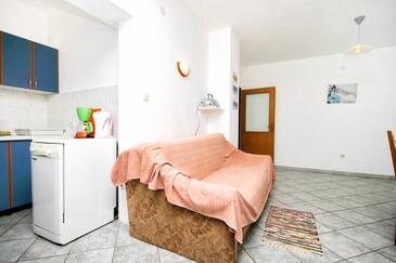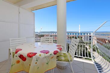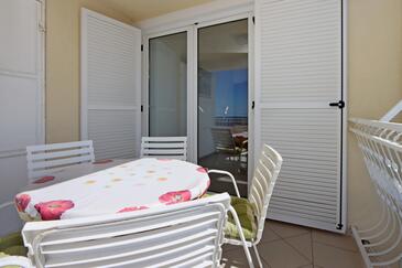 Ferienwohnung bietet Platz für 5 Gäste. Die Betten sind in Schlafzimmern, die es 2 gibt, und in Wohnzimmer, innerhalb einer Gesamtfläche von 64m2, angeordnet. Die Gäste haben eine eigene Terrasse zur Verfügung, auf der sie in warmen Sommernächten genießen können. Das Apartment bietet Meerblick. Es ist erlaubt, Speisen auf dem Gemeinschafts-Grill vorzubereiten.
