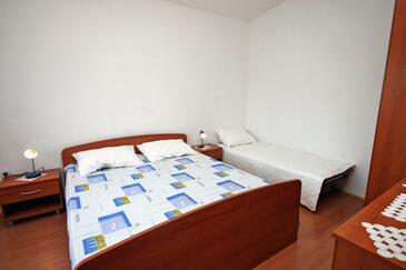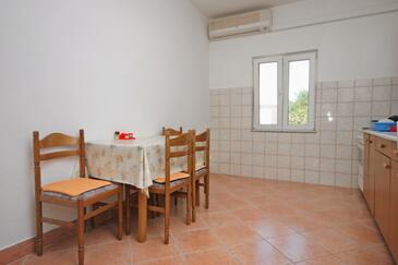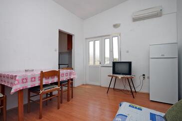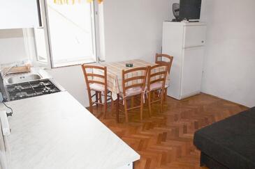 Ferienwohnung bietet Platz für 6 Gäste. Die Betten sind in Schlafzimmern, die es 2 gibt, innerhalb einer Gesamtfläche von 44m2, angeordnet. Die Gäste haben eine eigene Terrasse zur Verfügung, auf der sie in warmen Sommernächten genießen können. Das Apartment bietet Meerblick. Es ist erlaubt, Speisen auf dem Gemeinschafts-Grill vorzubereiten.