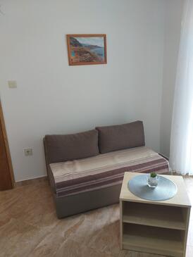 Ferienwohnung bietet Platz für 4 Gäste. Die Betten sind in Schlafzimmern, die es 2 gibt, innerhalb einer Gesamtfläche von 48m2, angeordnet. Die Gäste haben eine eigene Terrasse zur Verfügung, auf der sie in warmen Sommernächten genießen können. Das Apartment bietet Meerblick. Es ist erlaubt, Speisen auf dem Gemeinschafts-Grill vorzubereiten. Während ihres Aufenthalts können Gäste das gemeinsam zur Nutzung stehende Schwimmbad benutzen. In der Unterkunftseinheit besteht die Möglichkeit des Mitbringens von Haustieren gegen Aufpreis.