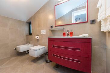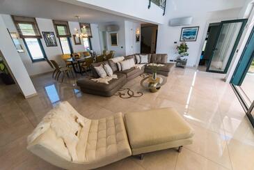 Haus bietet Platz für 10 Gäste. Die Betten sind in Schlafzimmern, die es 5 gibt, innerhalb einer Gesamtfläche von 175m2, angeordnet. Die Gäste haben eine eigene Terrasse zur Verfügung, auf der sie in warmen Sommernächten genießen können. Das Haus bietet Meerblick. Für vollen Genuss und Entspannung gibt es einen privaten Grill für Gäste dieser Unterkunft. Während ihres Aufenthalts können sich Gäste im privaten Schwimmbad entspannen. In der Unterkunftseinheit besteht die Möglichkeit des Mitbringens von Haustieren gegen Aufpreis. In der gebuchten Unterkunftseinheit zahlt man am Ort ein Depositum ( der Preis ist an der Internetseite angeführt ).
