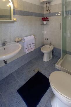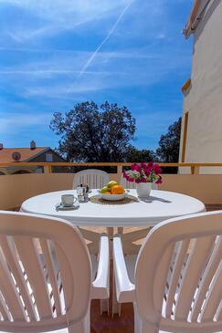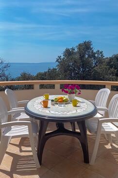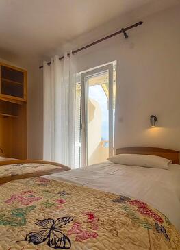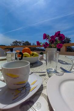 Ferienwohnung bietet Platz für 6 Gäste. Die Betten sind in Schlafzimmern, die es 2 gibt, innerhalb einer Gesamtfläche von 53m2, angeordnet. Die Gäste haben eine eigene Terrasse zur Verfügung, auf der sie in warmen Sommernächten genießen können. Das Apartment bietet Meerblick. Es ist erlaubt, Speisen auf dem Gemeinschafts-Grill vorzubereiten.