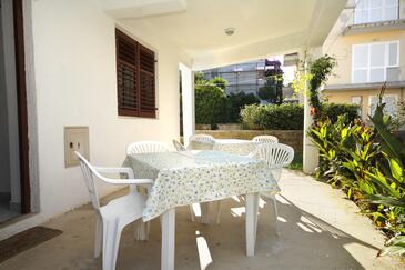 Ferienwohnung bietet Platz für 7 Gäste. Die Betten sind in Schlafzimmern, die es 3 gibt, innerhalb einer Gesamtfläche von 60m2, angeordnet. Die Gäste haben eine eigene Terrasse zur Verfügung, auf der sie in warmen Sommernächten genießen können. Es ist erlaubt, Speisen auf dem Gemeinschafts-Grill vorzubereiten. In der gebuchten Unterkunftseinheit zahlt man am Ort ein Depositum ( der Preis ist an der Internetseite angeführt ).
