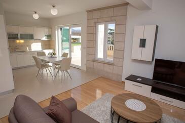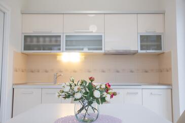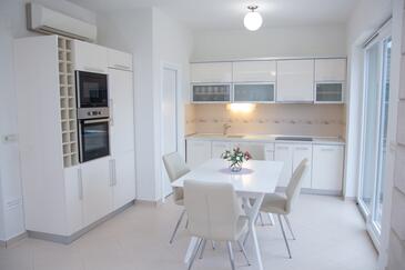 Ferienwohnung bietet Platz für 6 Gäste. Die Betten sind in Schlafzimmern, die es 2 gibt, und in Wohnzimmer, innerhalb einer Gesamtfläche von 80m2, angeordnet. Die Gäste haben eine eigene Terrasse zur Verfügung, auf der sie in warmen Sommernächten genießen können. Das Apartment bietet Meerblick. Es ist erlaubt, Speisen auf dem Gemeinschafts-Grill vorzubereiten. Während ihres Aufenthalts können Gäste das gemeinsam zur Nutzung stehende Schwimmbad benutzen.