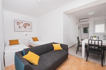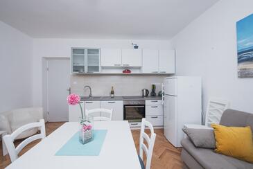 Ferienwohnung bietet Platz für 6 Gäste. Die Betten sind in Schlafzimmern, die es 2 gibt, und in Wohnzimmer, innerhalb einer Gesamtfläche von 50m2, angeordnet. Die Gäste haben eine eigene Terrasse zur Verfügung, auf der sie in warmen Sommernächten genießen können. Das Apartment bietet Meerblick. Es ist erlaubt, Speisen auf dem Gemeinschafts-Grill vorzubereiten. In der gebuchten Unterkunftseinheit zahlt man am Ort ein Depositum ( der Preis ist an der Internetseite angeführt ).