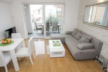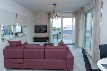 Ferienwohnung bietet Platz für 6 Gäste. Die Betten sind in Schlafzimmern, die es 2 gibt, und in Wohnzimmer, innerhalb einer Gesamtfläche von 55m2, angeordnet. Die Gäste haben eine eigene Terrasse zur Verfügung, auf der sie in warmen Sommernächten genießen können. Für vollen Genuss und Entspannung gibt es einen privaten Grill für Gäste dieser Unterkunft. In der Unterkunftseinheit besteht die Möglichkeit des Mitbringens von Haustieren gegen Aufpreis. In der gebuchten Unterkunftseinheit zahlt man am Ort ein Depositum ( der Preis ist an der Internetseite angeführt ).