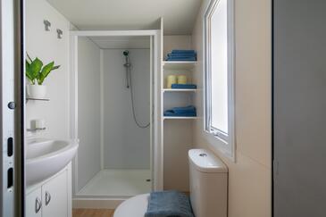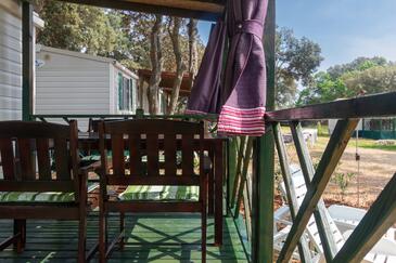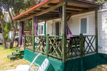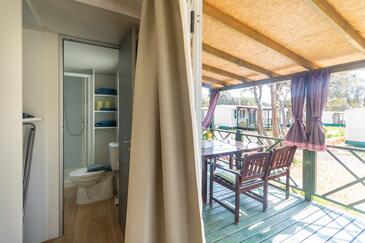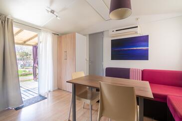 Ferienwohnung bietet Platz für 6 Gäste. Die Betten sind in Schlafzimmern, die es 2 gibt, und in Esszimmer, innerhalb einer Gesamtfläche von 32m2, angeordnet. Die Gäste haben eine eigene Terrasse zur Verfügung, auf der sie in warmen Sommernächten genießen können. Es ist erlaubt, Speisen auf dem Gemeinschafts-Grill vorzubereiten. In der Unterkunftseinheit besteht die Möglichkeit des Mitbringens von Haustieren gegen Aufpreis.