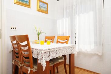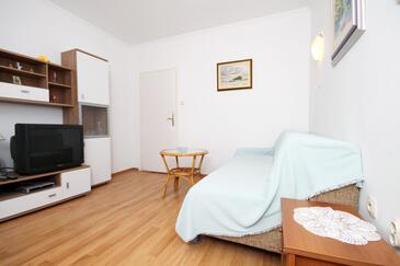 Ferienwohnung bietet Platz für 6 Gäste. Die Betten sind in Schlafzimmern, die es 2 gibt, und in Wohnzimmer, innerhalb einer Gesamtfläche von 66m2, angeordnet. Die Gäste haben eine eigene Terrasse zur Verfügung, auf der sie in warmen Sommernächten genießen können. Das Apartment bietet Meerblick. Es ist erlaubt, Speisen auf dem Gemeinschafts-Grill vorzubereiten.