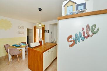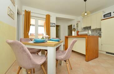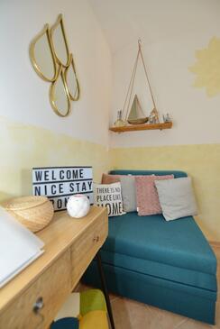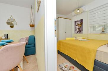 Ferienwohnung bietet Platz für 4 Gäste. Die Betten sind in Schlafzimmern, die es 2 gibt, innerhalb einer Gesamtfläche von 40m2, angeordnet. Die Gäste haben einen eigenen Balkon zur Verfügung, auf der sie in warmen Sommernächten genießen können. Das Apartment bietet Meerblick.
