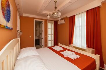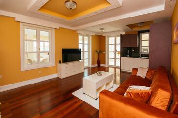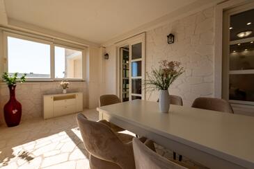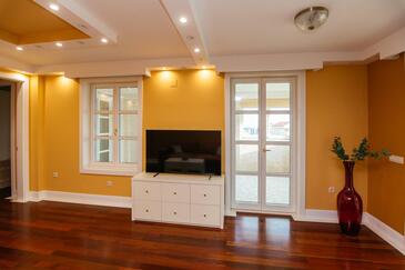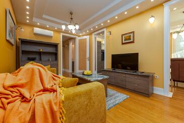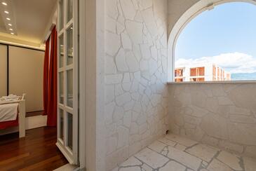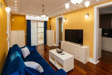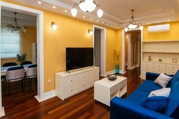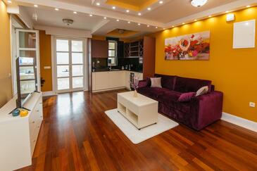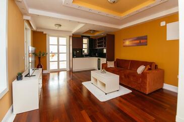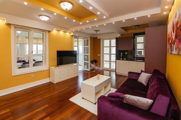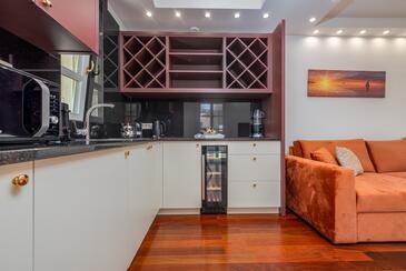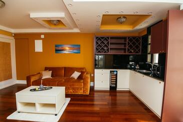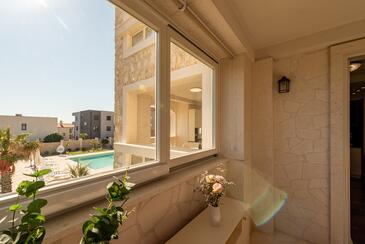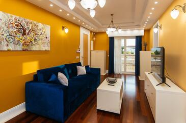 Ferienwohnung bietet Platz für 5 Gäste. Die Betten sind in Schlafzimmern, die es 2 gibt, und in Wohnzimmer, innerhalb einer Gesamtfläche von 69m2, angeordnet. Die Gäste haben einen eigenen Balkon zur Verfügung, auf der sie in warmen Sommernächten genießen können. Es ist erlaubt, Speisen auf dem Gemeinschafts-Grill vorzubereiten. Während ihres Aufenthalts können Gäste das gemeinsam zur Nutzung stehende Schwimmbad benutzen. In der Unterkunftseinheit besteht die Möglichkeit des Mitbringens von Haustieren gegen Aufpreis. In der gebuchten Unterkunftseinheit zahlt man am Ort ein Depositum ( der Preis ist an der Internetseite angeführt ).