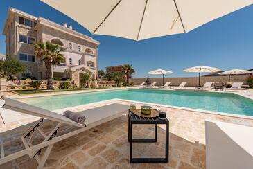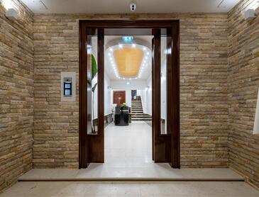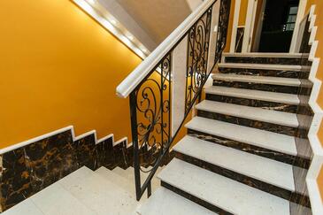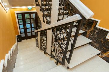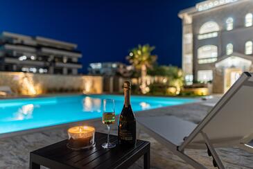 Ferienwohnung bietet Platz für 5 Gäste. Die Betten sind in Schlafzimmern, die es 2 gibt, und in Wohnzimmer, innerhalb einer Gesamtfläche von 69m2, angeordnet. Die Gäste haben einen eigenen Balkon zur Verfügung, auf der sie in warmen Sommernächten genießen können. Es ist erlaubt, Speisen auf dem Gemeinschafts-Grill vorzubereiten. Während ihres Aufenthalts können Gäste das gemeinsam zur Nutzung stehende Schwimmbad benutzen. In der Unterkunftseinheit besteht die Möglichkeit des Mitbringens von Haustieren gegen Aufpreis. In der gebuchten Unterkunftseinheit zahlt man am Ort ein Depositum ( der Preis ist an der Internetseite angeführt ).
