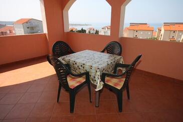 Ferienwohnung bietet Platz für 4 Gäste. Die Betten sind in Schlafzimmern, die es 2 gibt, innerhalb einer Gesamtfläche von 51m2, angeordnet. Die Gäste haben eine eigene Terrasse zur Verfügung, auf der sie in warmen Sommernächten genießen können. Das Apartment bietet Meerblick. Es ist erlaubt, Speisen auf dem Gemeinschafts-Grill vorzubereiten. In der Unterkunftseinheit besteht die Möglichkeit des Mitbringens von Haustieren gegen Aufpreis.