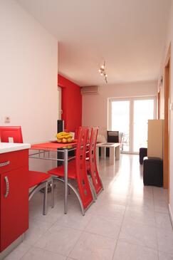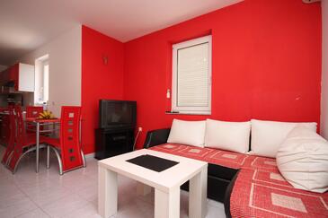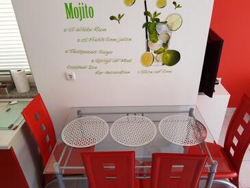 Ferienwohnung bietet Platz für 4 Gäste. Die Betten sind in Schlafzimmern, die es 2 gibt, innerhalb einer Gesamtfläche von 42m2, angeordnet. Die Gäste haben eine eigene Terrasse zur Verfügung, auf der sie in warmen Sommernächten genießen können. Das Apartment bietet Meerblick. In der gebuchten Unterkunftseinheit zahlt man am Ort ein Depositum ( der Preis ist an der Internetseite angeführt ).