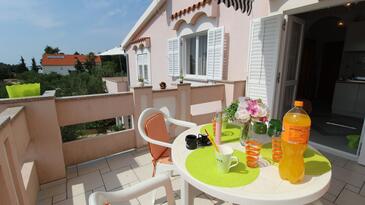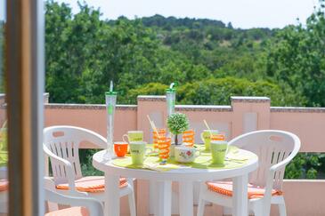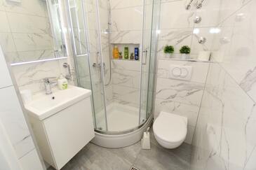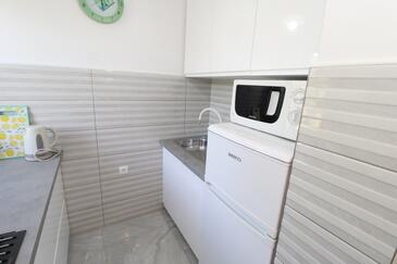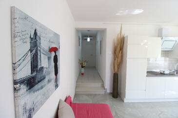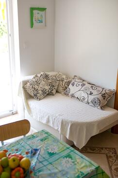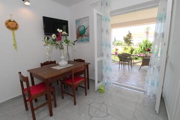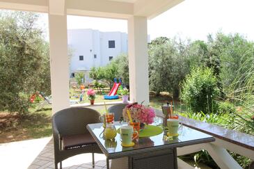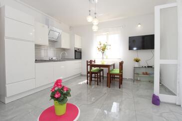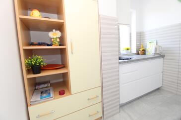 Ferienwohnung bietet Platz für 5 Gäste. Die Betten sind in Schlafzimmern, die es 2 gibt, und in Esszimmer, innerhalb einer Gesamtfläche von 42m2, angeordnet. Die Gäste haben eine eigene Terrasse zur Verfügung, auf der sie in warmen Sommernächten genießen können. Es ist erlaubt, Speisen auf dem Gemeinschafts-Grill vorzubereiten. In der Unterkunftseinheit besteht die Möglichkeit des Mitbringens von Haustieren gegen Aufpreis. In der gebuchten Unterkunftseinheit zahlt man am Ort ein Depositum ( der Preis ist an der Internetseite angeführt ).