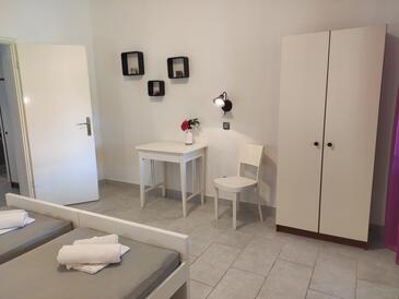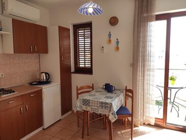 Ferienwohnung bietet Platz für 6 Gäste. Die Betten sind in Schlafzimmern, die es 3 gibt, innerhalb einer Gesamtfläche von 64m2, angeordnet. Die Gäste haben eine eigene Terrasse zur Verfügung, auf der sie in warmen Sommernächten genießen können. Das Apartment bietet Meerblick. Es ist erlaubt, Speisen auf dem Gemeinschafts-Grill vorzubereiten.