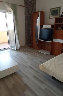 Ferienwohnung bietet Platz für 6 Gäste. Die Betten sind in Schlafzimmern, die es 2 gibt, und in Wohnzimmer, innerhalb einer Gesamtfläche von 64m2, angeordnet. Die Gäste haben einen eigenen Balkon zur Verfügung, auf der sie in warmen Sommernächten genießen können. Das Apartment bietet Meerblick. Es ist erlaubt, Speisen auf dem Gemeinschafts-Grill vorzubereiten.