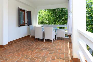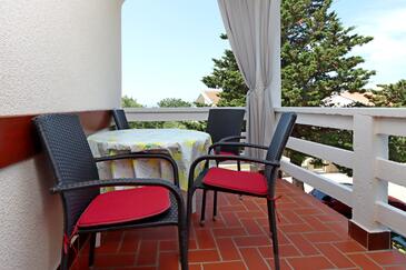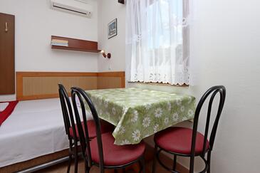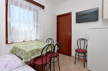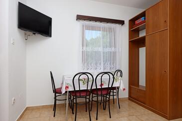 Ferienwohnung bietet Platz für 4 Gäste. Die Betten sind in Schlafzimmern, die es 1 gibt, und in Esszimmer, innerhalb einer Gesamtfläche von 25m2, angeordnet. Die Gäste haben eine eigene Terrasse zur Verfügung, auf der sie in warmen Sommernächten genießen können. Das Apartment bietet Meerblick. Es ist erlaubt, Speisen auf dem Gemeinschafts-Grill vorzubereiten.