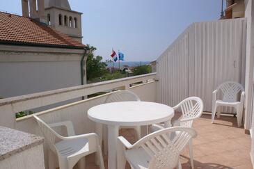 Ferienwohnung bietet Platz für 6 Gäste. Die Betten sind in Schlafzimmern, die es 2 gibt, und in Esszimmer, innerhalb einer Gesamtfläche von 44m2, angeordnet. Die Gäste haben eine eigene Terrasse zur Verfügung, auf der sie in warmen Sommernächten genießen können. Das Apartment bietet Meerblick. Es ist erlaubt, Speisen auf dem Gemeinschafts-Grill vorzubereiten. In der Unterkunftseinheit besteht die Möglichkeit des Mitbringens von Haustieren gegen Aufpreis.