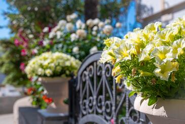 Ferienwohnung bietet Platz für 6 Gäste. Die Betten sind in Schlafzimmern, die es 2 gibt, und in Esszimmer, innerhalb einer Gesamtfläche von 44m2, angeordnet. Die Gäste haben eine eigene Terrasse zur Verfügung, auf der sie in warmen Sommernächten genießen können. Das Apartment bietet Meerblick. Es ist erlaubt, Speisen auf dem Gemeinschafts-Grill vorzubereiten. In der Unterkunftseinheit besteht die Möglichkeit des Mitbringens von Haustieren gegen Aufpreis.