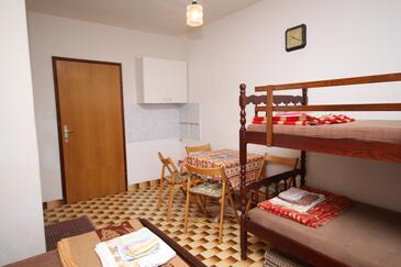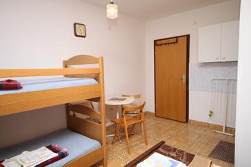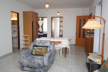 Ferienwohnung bietet Platz für 8 Gäste. Die Betten sind in Schlafzimmern, die es 3 gibt, und in Wohnzimmer, innerhalb einer Gesamtfläche von 79m2, angeordnet. Die Gäste haben eine eigene Terrasse zur Verfügung, auf der sie in warmen Sommernächten genießen können. Das Apartment bietet Meerblick. Es ist erlaubt, Speisen auf dem Gemeinschafts-Grill vorzubereiten. In der Unterkunftseinheit besteht die Möglichkeit des Mitbringens von Haustieren gegen Aufpreis.