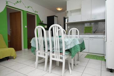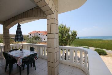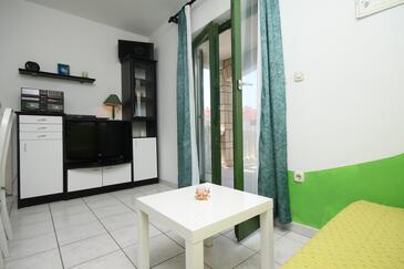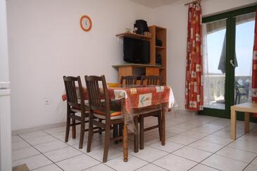Ferienwohnung bietet Platz für 6 Gäste. Die Betten sind in Schlafzimmern, die es 2 gibt, und in Wohnzimmer, innerhalb einer Gesamtfläche von 43m2, angeordnet. Die Gäste haben eine eigene Terrasse zur Verfügung, auf der sie in warmen Sommernächten genießen können. Das Apartment bietet Meerblick. Es ist erlaubt, Speisen auf dem Gemeinschafts-Grill vorzubereiten.