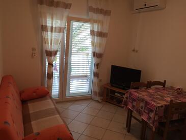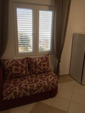 Ferienwohnung bietet Platz für 5 Gäste. Die Betten sind in Schlafzimmern, die es 2 gibt, und in Esszimmer, innerhalb einer Gesamtfläche von 35m2, angeordnet. Die Gäste haben eine eigene Terrasse zur Verfügung, auf der sie in warmen Sommernächten genießen können. Es ist erlaubt, Speisen auf dem Gemeinschafts-Grill vorzubereiten. In der Unterkunftseinheit besteht die Möglichkeit des Mitbringens von Haustieren gegen Aufpreis.