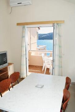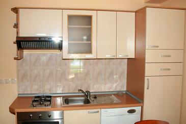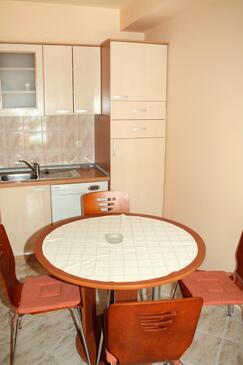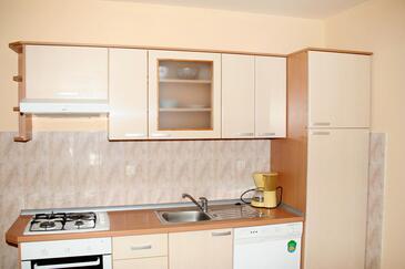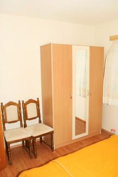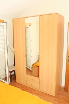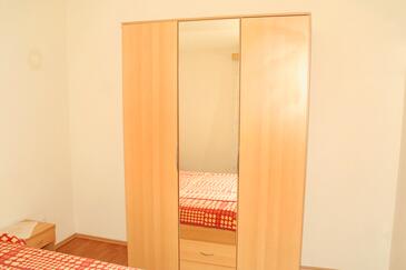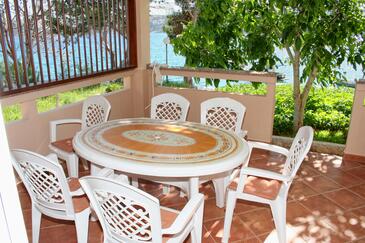Ferienwohnung bietet Platz für 5 Gäste. Die Betten sind in Schlafzimmern, die es 2 gibt, innerhalb einer Gesamtfläche von 47m2, angeordnet. Die Gäste haben eine eigene Terrasse zur Verfügung, auf der sie in warmen Sommernächten genießen können. Das Apartment bietet Meerblick. Es ist erlaubt, Speisen auf dem Gemeinschafts-Grill vorzubereiten.