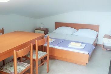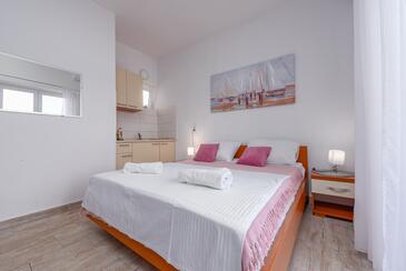 Ferienwohnung bietet Platz für 6 Gäste. Die Betten sind in Schlafzimmern, die es 2 gibt, und in Esszimmer, innerhalb einer Gesamtfläche von 60m2, angeordnet. Die Gäste haben eine eigene Terrasse zur Verfügung, auf der sie in warmen Sommernächten genießen können. Das Apartment bietet Meerblick. Es ist erlaubt, Speisen auf dem Gemeinschafts-Grill vorzubereiten.