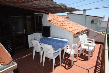 Ferienwohnung bietet Platz für 7 Gäste. Die Betten sind in Schlafzimmern, die es 3 gibt, und in Esszimmer, innerhalb einer Gesamtfläche von 67m2, angeordnet. Die Gäste haben einen eigenen Balkon zur Verfügung, auf der sie in warmen Sommernächten genießen können. Das Apartment bietet Meerblick. Es ist erlaubt, Speisen auf dem Gemeinschafts-Grill vorzubereiten. Durch den Flur der gebuchten Unterkunftseinheit gehen auch andere Gäste oder Vermieter.
