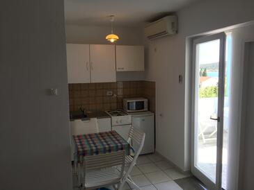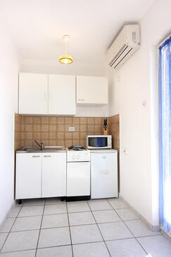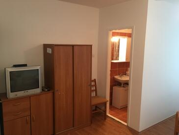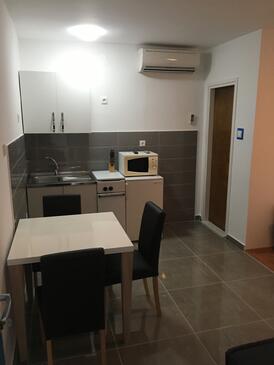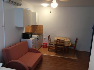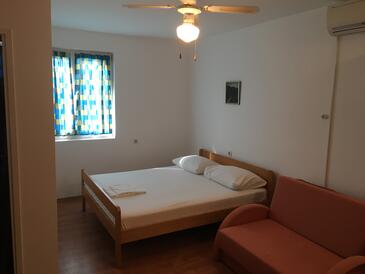Ferienwohnung bietet Platz für 7 Gäste. Die Betten sind in Schlafzimmern, die es 2 gibt, und in Esszimmer, innerhalb einer Gesamtfläche von 65m2, angeordnet. Die Gäste haben eine eigene Terrasse zur Verfügung, auf der sie in warmen Sommernächten genießen können. Das Apartment bietet Meerblick. Es ist erlaubt, Speisen auf dem Gemeinschafts-Grill vorzubereiten. In der Unterkunftseinheit besteht die Möglichkeit des Mitbringens von Haustieren gegen Aufpreis. In der gebuchten Unterkunftseinheit zahlt man am Ort ein Depositum ( der Preis ist an der Internetseite angeführt ).