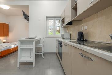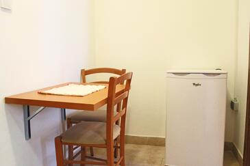 Ferienwohnung bietet Platz für 2 Gäste. Die Betten sind in Schlafzimmern, die es 1 gibt, innerhalb einer Gesamtfläche von 19m2, angeordnet. Die Gäste haben eine eigene Terrasse zur Verfügung, auf der sie in warmen Sommernächten genießen können. Es ist erlaubt, Speisen auf dem Gemeinschafts-Grill vorzubereiten.