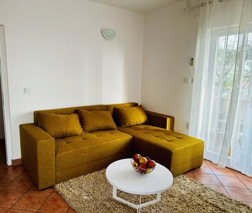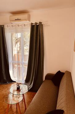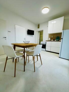 Ferienwohnung bietet Platz für 5 Gäste. Die Betten sind in Schlafzimmern, die es 2 gibt, und in Wohnzimmer, innerhalb einer Gesamtfläche von 58m2, angeordnet. Die Gäste haben eine eigene Terrasse zur Verfügung, auf der sie in warmen Sommernächten genießen können. Das Apartment bietet Meerblick. Es ist erlaubt, Speisen auf dem Gemeinschafts-Grill vorzubereiten.