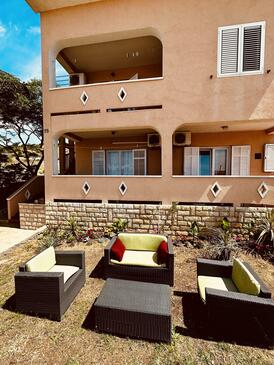 Ferienwohnung bietet Platz für 5 Gäste. Die Betten sind in Schlafzimmern, die es 2 gibt, und in Wohnzimmer, innerhalb einer Gesamtfläche von 58m2, angeordnet. Die Gäste haben eine eigene Terrasse zur Verfügung, auf der sie in warmen Sommernächten genießen können. Das Apartment bietet Meerblick. Es ist erlaubt, Speisen auf dem Gemeinschafts-Grill vorzubereiten.