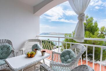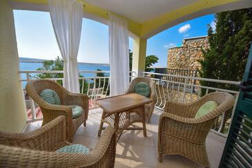 Ferienwohnung bietet Platz für 4 Gäste. Die Betten sind in Schlafzimmern, die es 2 gibt, innerhalb einer Gesamtfläche von 40m2, angeordnet. Die Gäste haben eine eigene Terrasse zur Verfügung, auf der sie in warmen Sommernächten genießen können. Das Apartment bietet Meerblick. Es ist erlaubt, Speisen auf dem Gemeinschafts-Grill vorzubereiten. Durch die Terrasse der gebuchten Unterkunftseinheit gehen auch andere Gäste oder Vermieter. Unterkunftseinheit hat Räume, die von dem Rest der Einheit abgetrennt werden.