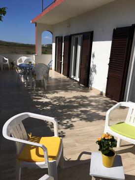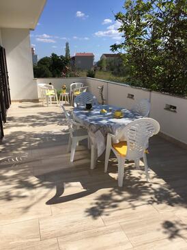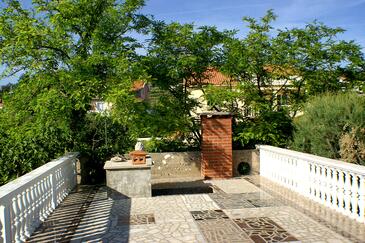 Ferienwohnung bietet Platz für 8 Gäste. Die Betten sind in Schlafzimmern, die es 3 gibt, innerhalb einer Gesamtfläche von 84m2, angeordnet. Die Gäste haben eine eigene Terrasse zur Verfügung, auf der sie in warmen Sommernächten genießen können. Es ist erlaubt, Speisen auf dem Gemeinschafts-Grill vorzubereiten.