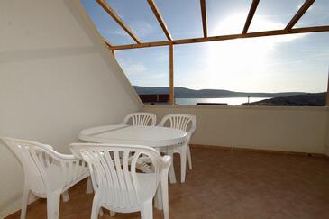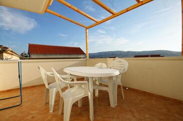 Ferienwohnung bietet Platz für 4 Gäste. Die Betten sind in Schlafzimmern, die es 1 gibt, und in Wohnzimmer, innerhalb einer Gesamtfläche von 47m2, angeordnet. Die Gäste haben eine eigene Terrasse zur Verfügung, auf der sie in warmen Sommernächten genießen können. Das Apartment bietet Meerblick. Es ist erlaubt, Speisen auf dem Gemeinschafts-Grill vorzubereiten.